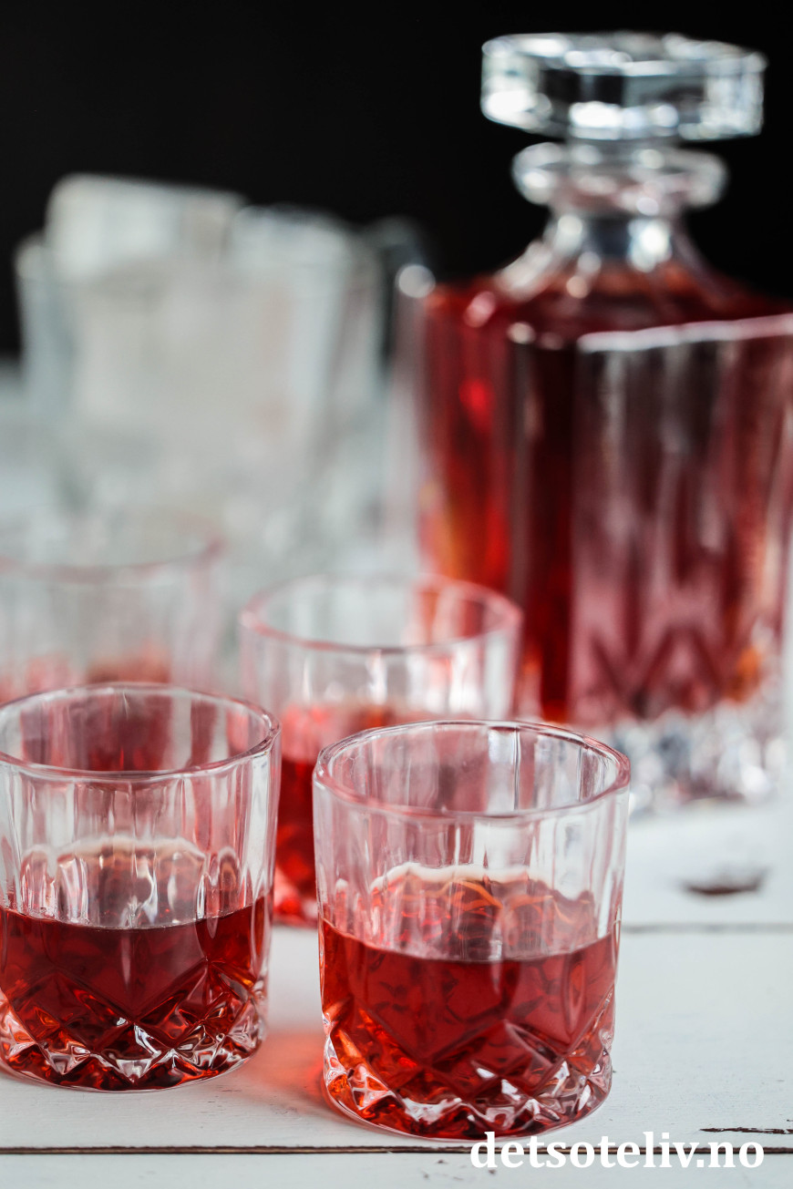 Denne likøren blir ikke så sterk, særlig ikke hvis du legger noen isbiter i glasset, så et glass egner seg godt som en liten aperitiff før middagen. 😊