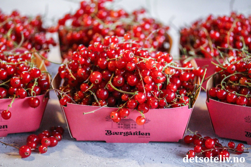 Ikke alle er så heldige at de har sine egne ripsbusker i hagen, men heldigvis går det an å bestille ripsbær hos de som har det. Jeg bruker her fantastisk flotte rips fra Bærgården i Lier. Ønsker du å kjøpe bær av beste kvalitet og bor i nærheten av Oslo/Drammen, anbefaler jeg deg virkelig å ta kontakt med dem (ring 917 96 096 eller send mail til post@enger.no).