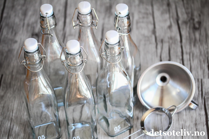 ♥ saftflasker som er tette (jeg brukte her 6 glassflasker som rommet 0,5 liter hver)
