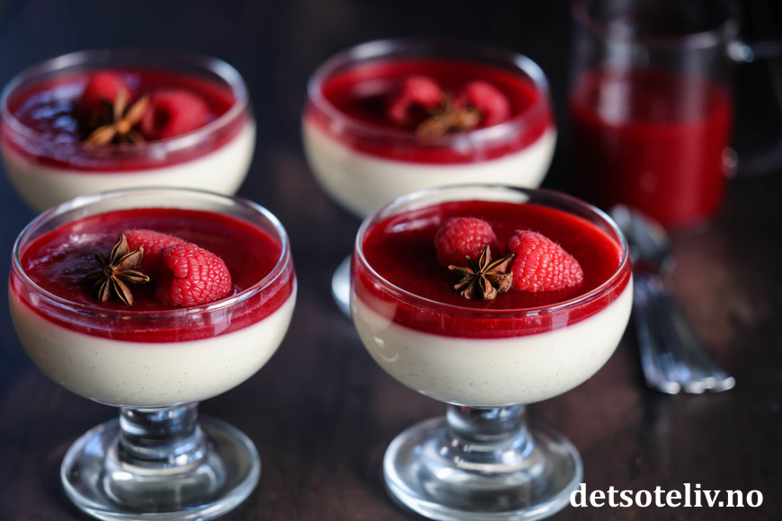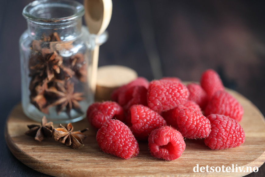 Pynt hver dessert med noen friske bringebær og hel stjerneanis.