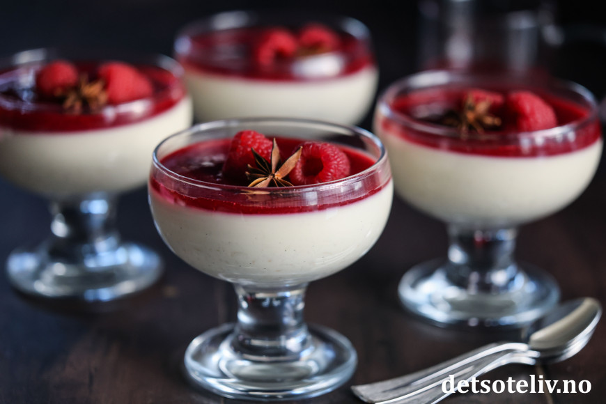 Riskrem-panna cotta kombinerer de to favorittdessertene Riskrem og Panna cotta.