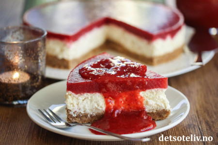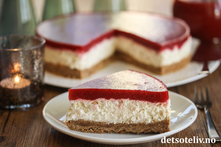 Se også oppskrift på Ostekake med risgrøt, pepperkakebunn og jordbærkompott.
