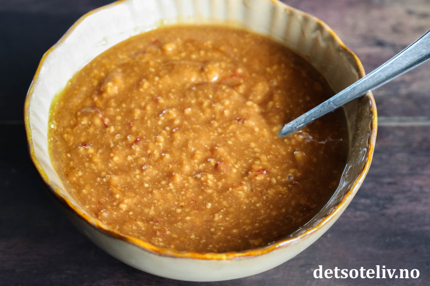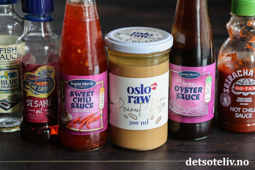 ♥ Ingrediensene til den asiatiske peanøttsausen får du kjøpt i de fleste, norske matbutikkene. Det er det samme om du bruker creamy eller crunchy peanøttsmør.