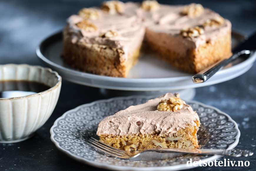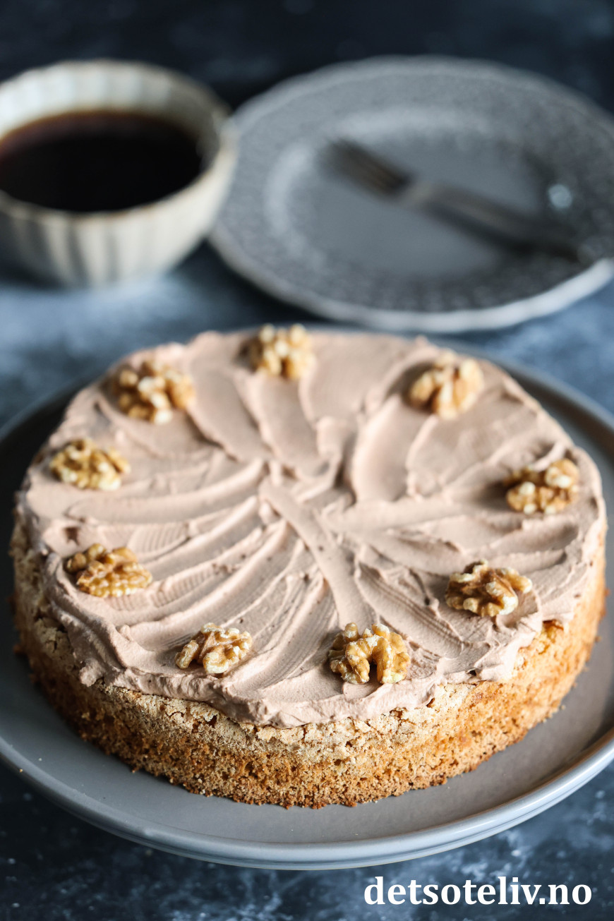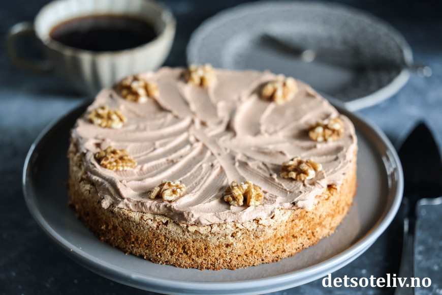 Pynt kaken eventuelt med noen hele valnøttkjerner.