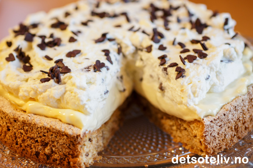 Kakebunnen kan godt lages i forveien, men kaken smaker best samme dag den dekkes med krem. La kaken stå og trekke et par timer i kjøleskapet før servering.