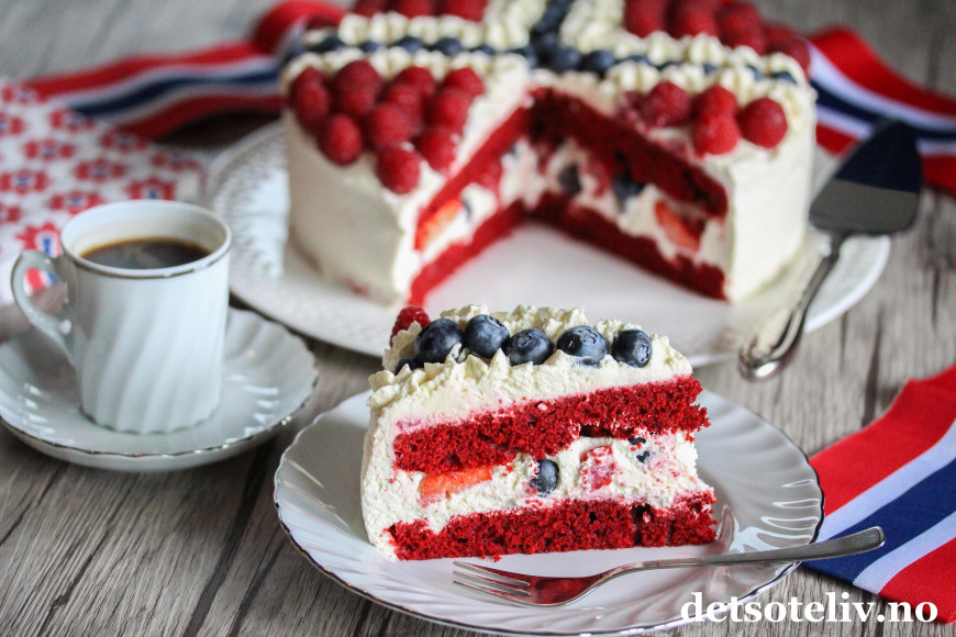 Her kommer en fornorsket variant av den populære, amerikanske kaken Red Velvet, som du allerede finner i flere variasjoner her på Det søte liv.