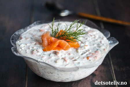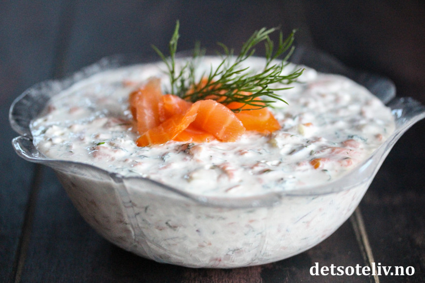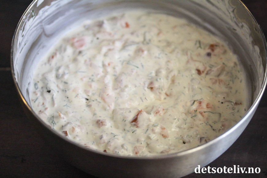 ♥ Røkelakskremen kan gjerne stå i kjøleskapet i et par timer eller over natten. Da blir den tykkere i konsistensen.