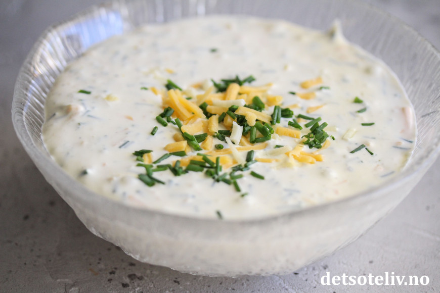 ♥ Du kan bruke lettrømme i stedet for seterrømme, men da vil dippen blir litt mer tyntflytende.