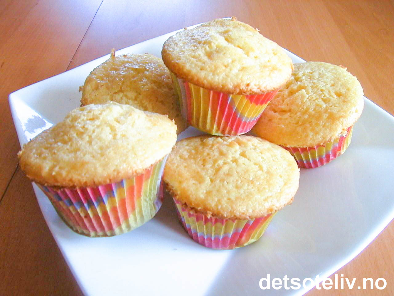Har du ikke muffinsbrett kan du bruke vanlige, doble papirformer. Fyll da ikke formene for fulle, ellers renner deigen over kanten under steking. Du får da flere små muffins som trenger noe kortere steketid.