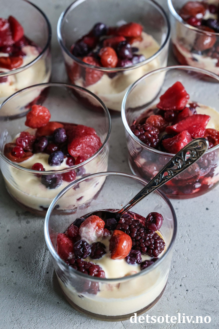 Rommarinerte bær og frukter serveres med vaniljeis!