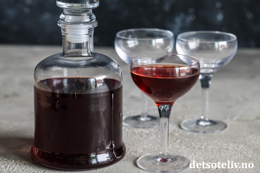 ♥ Se også oppskrifter på hjemmelaget likør: Bringebærlikør, Multelikør, Ripslikør og Plommelikør.