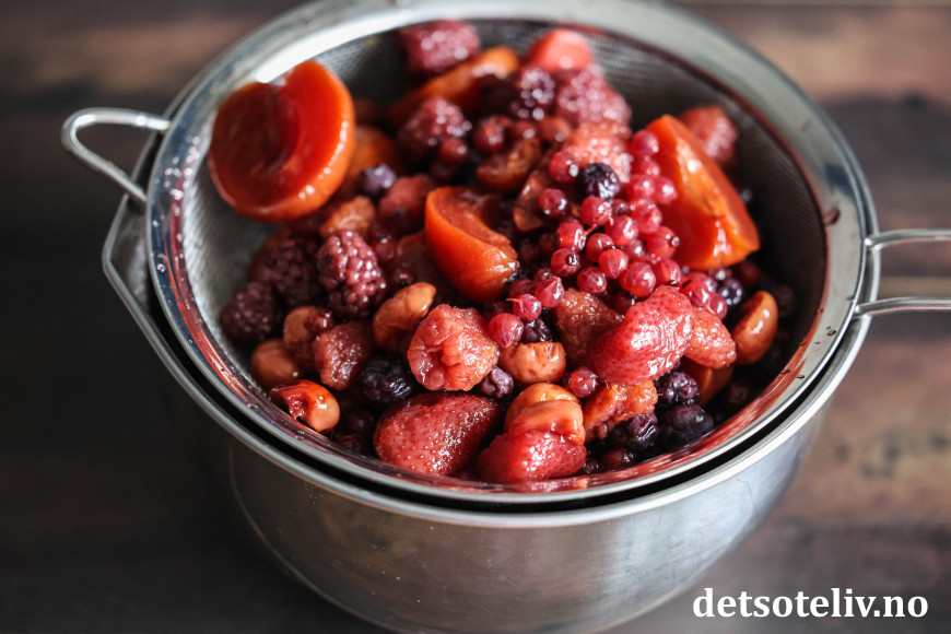 ♥ Du kan bruke alle slags bær. I stedet for aprikoser, kan du bruke for eksempel plommer eller fersken.