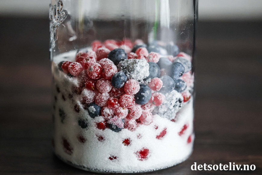 ♥ Vær nøye på at det ikke er noe som helst mugg på noen av bærene (sjekk særlig inni bringebær og bjørnebær). Det vil ødelegge hele resultatet.