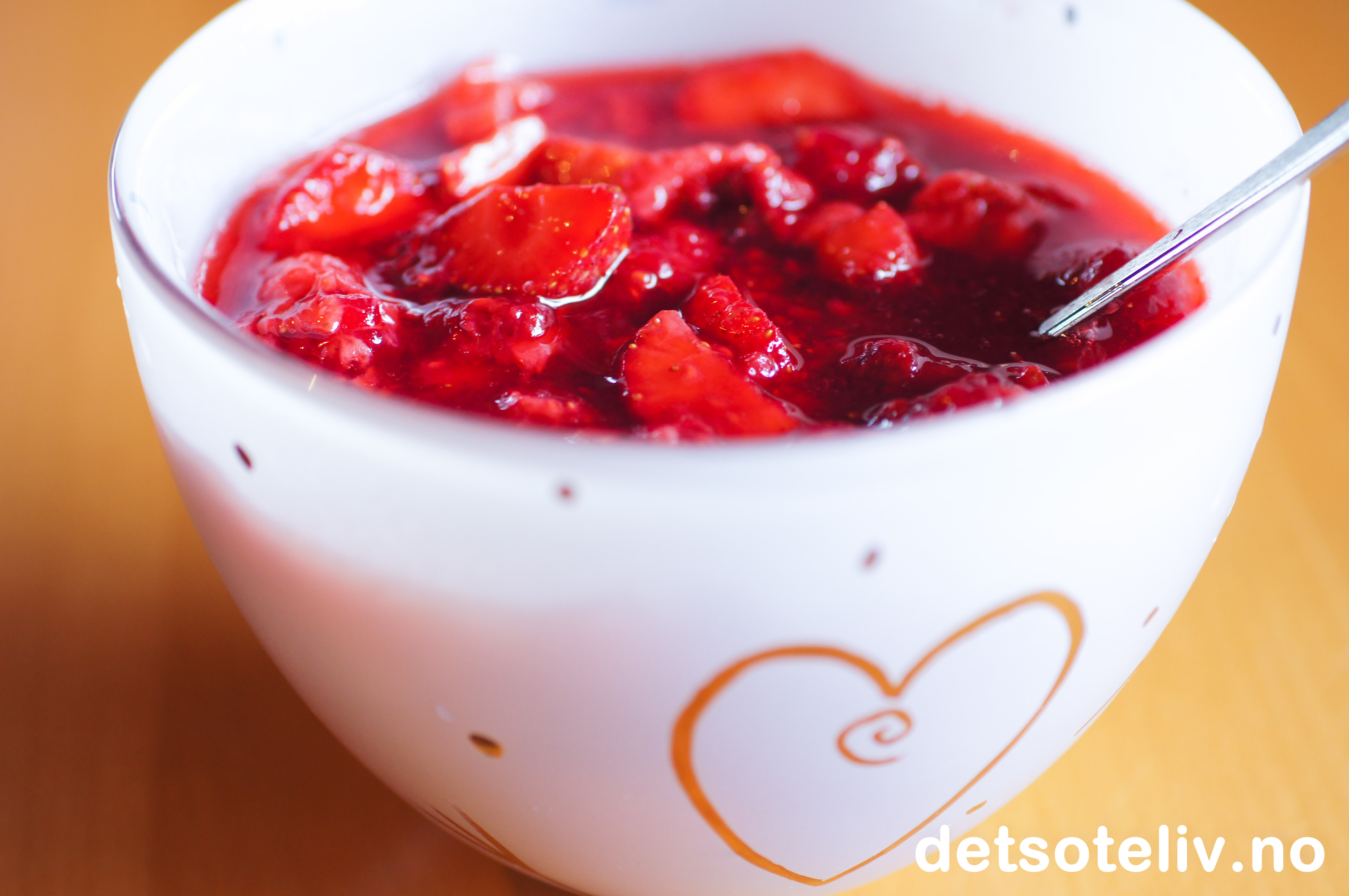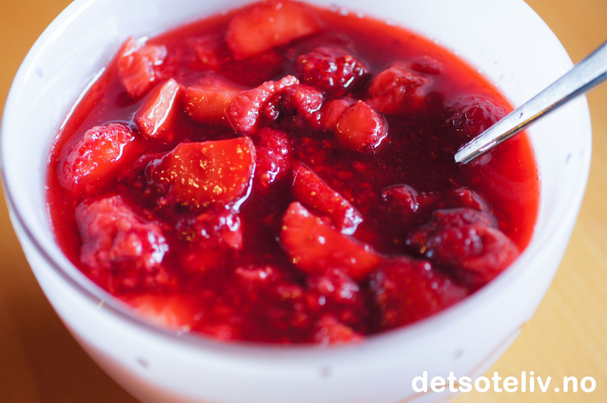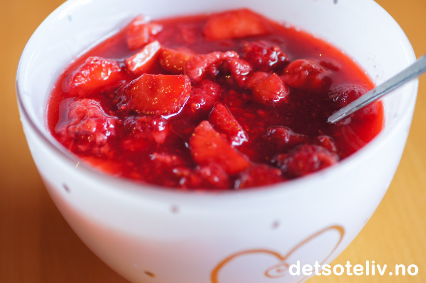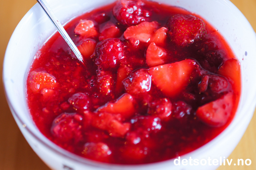 Se også Rørte jordbær og Rørt bringebærsyltetøy. Her har du altså kombinasjonen av både jordbær og bringebær!