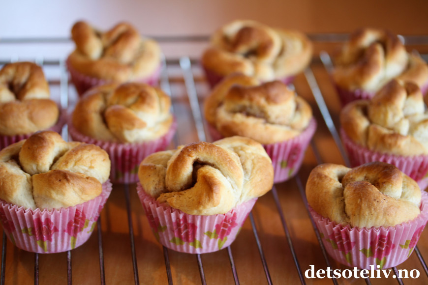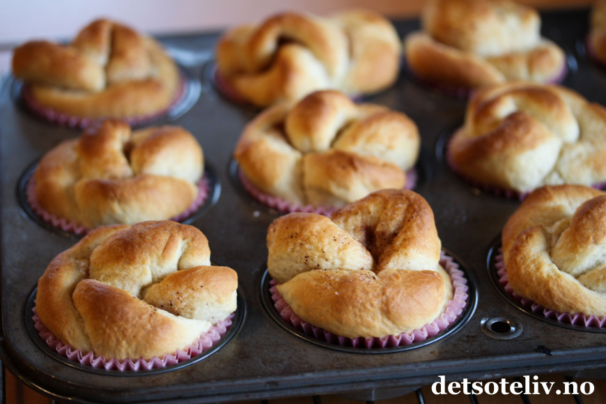 Når du bruker muffinsbrett, holder bollene enda bedre fasongen under stekingen.