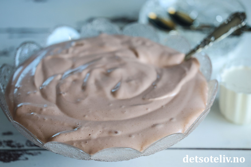 ♥ Husmødre pisket sikkert denne desserten for hånd i gamle dager, men jeg vil absolutt anbefale deg på det sterkeste å bruke kjøkkenmaskin! Selv med kraftig pisking i kjøkkenmaskin, vil det ta minst 10 minutter før du får en krem med den rette, luftige konsistensen. Dette er i hvert fall ikke noe jeg ville ha orket å piske for hånd... 😊