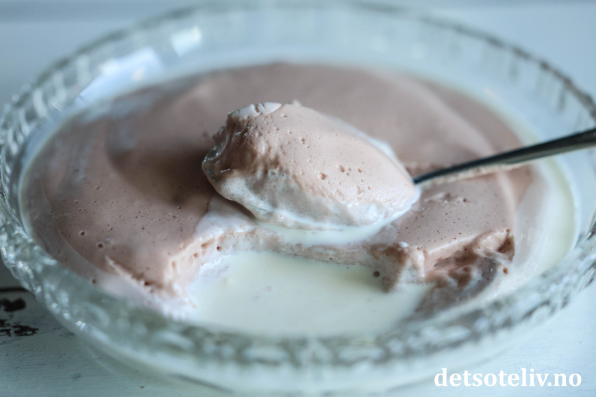Desserten lages av saft og semulegryn, som først kokes, og deretter piskes kraftig til du får en luftig krem.