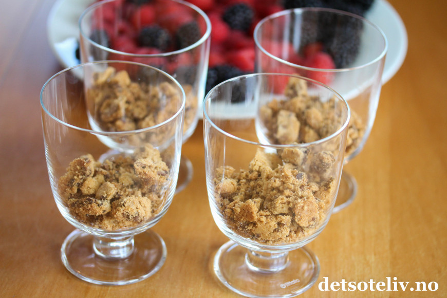 Ha på flere bær og dryss over kjekssmuler.