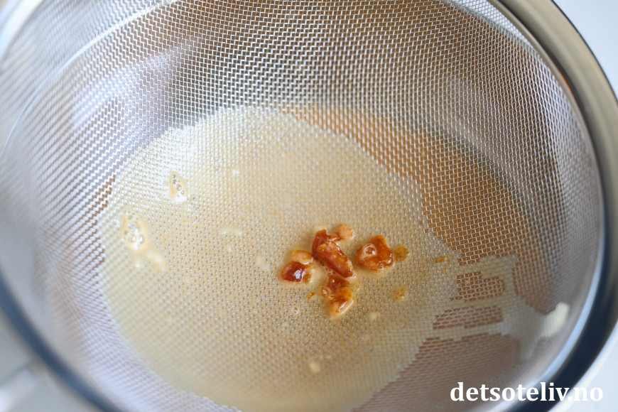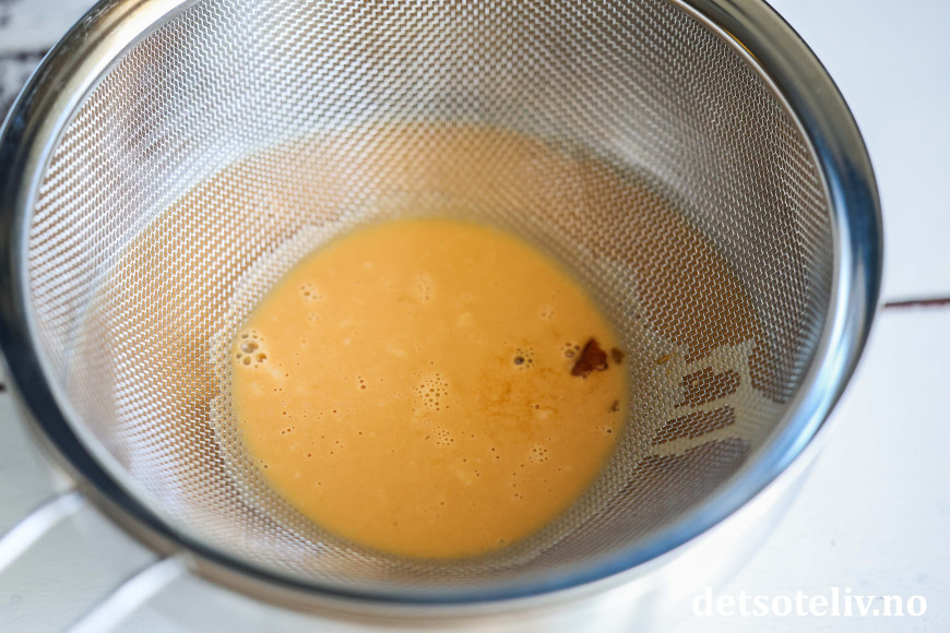 Sil karamellfløten for å fjerne eventuelle små biter av smeltet sukker som ikke har løst seg opp.