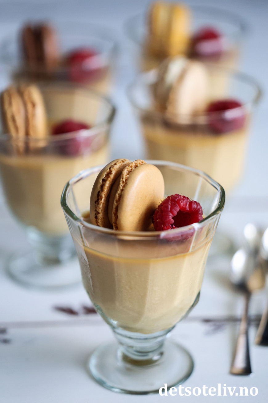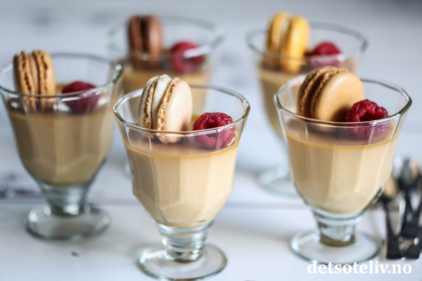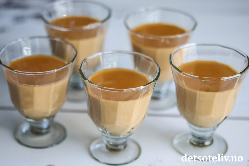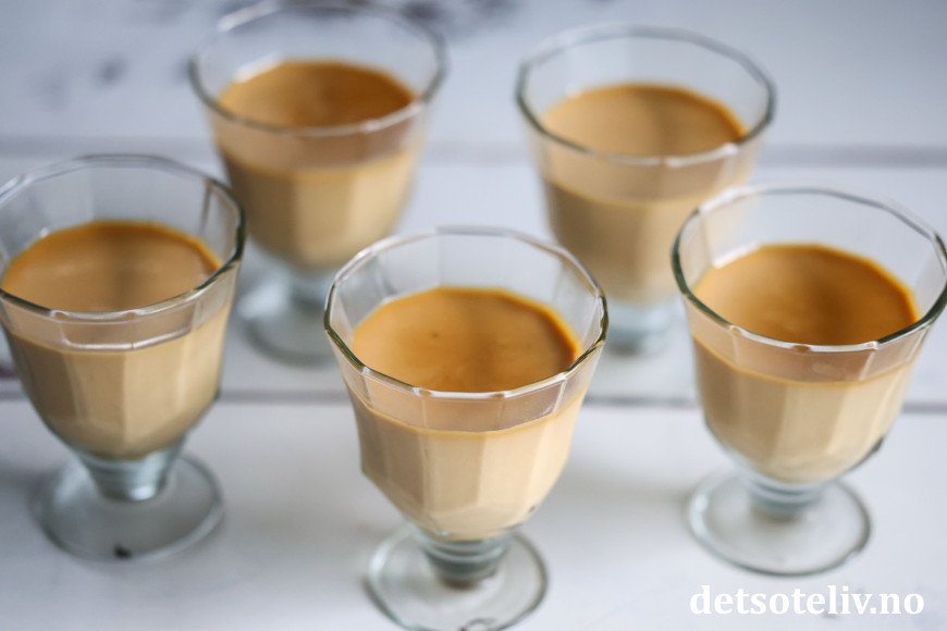 Denne lekre versjonen av panna cotta blir lysebrun i fargen og smaker deilig karamell!