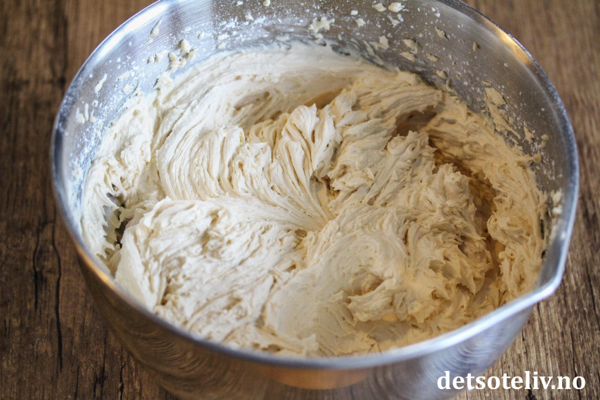Spe med melk og pisk ingrediensene sammen til en luftig karamellsmørkrem.