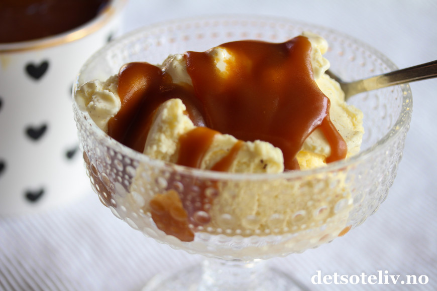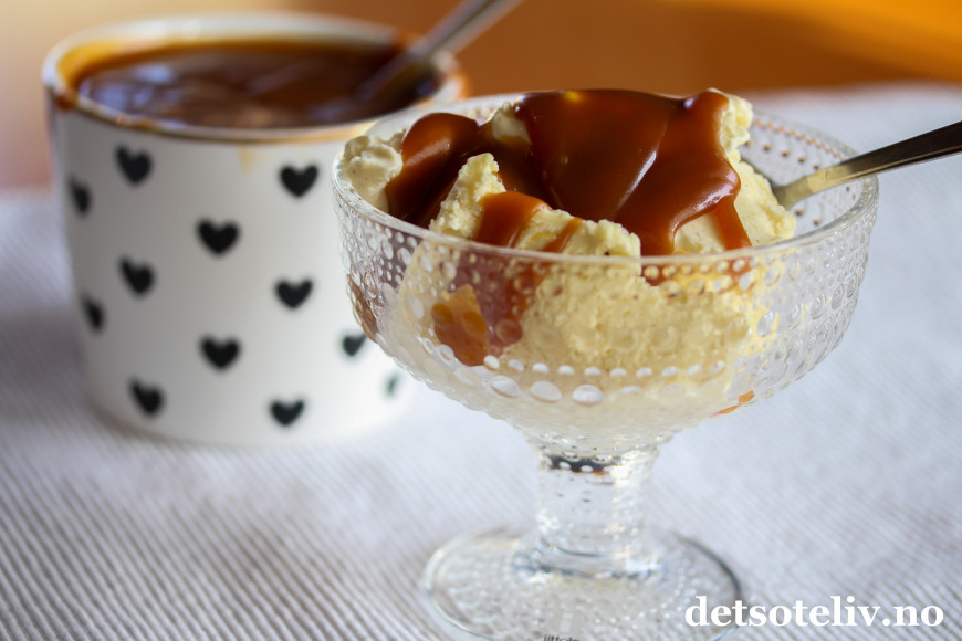 En favoritt er å serveres karamellsausen lett oppvarmet sammen med en skikkelig god vaniljeiskrem med fløte og ekte vanilje!