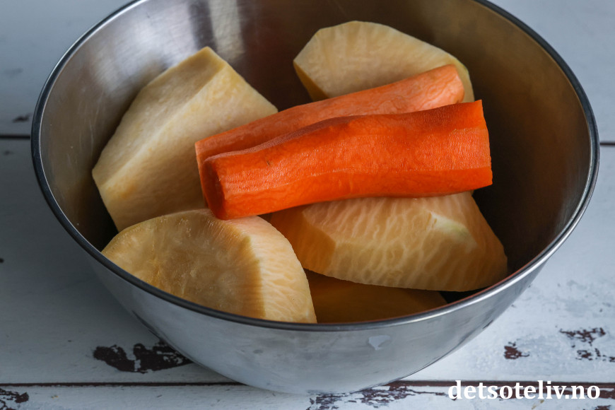 Rotmos med kålrot og gulrot: