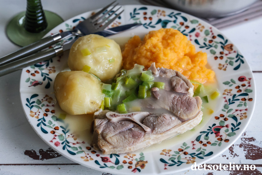 ♥ Mange liker å servere raspeballer til salt lammekjøtt. Raspeballene kan da gjerne koke i samme gryte som lammekjøttet slik at de tar til seg smaken fra kjøttet. (Du skal få oppskrift på kjempegode, hjemmelagde raspeballer av meg en annen gang. 😊)