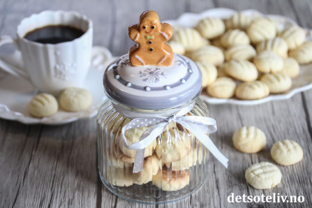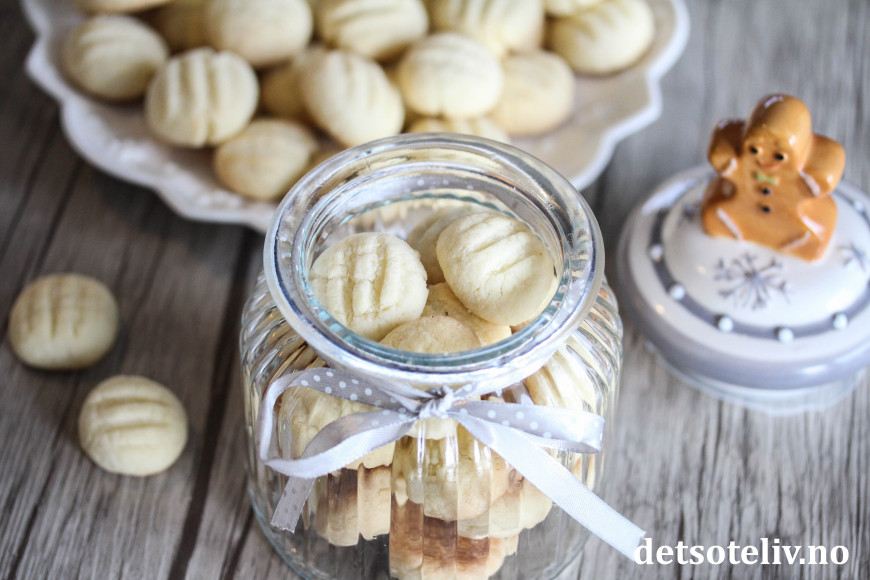 ♥ Se også oppskrift på Vaniljedrømmer, som er tilsvarende kaker, men med mye mer vaniljesukker i deigen.