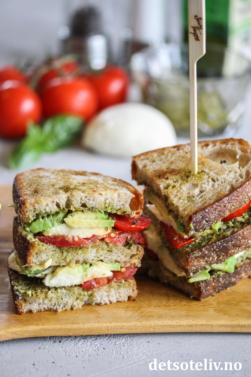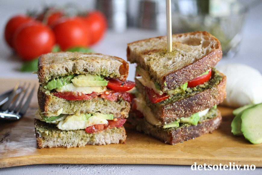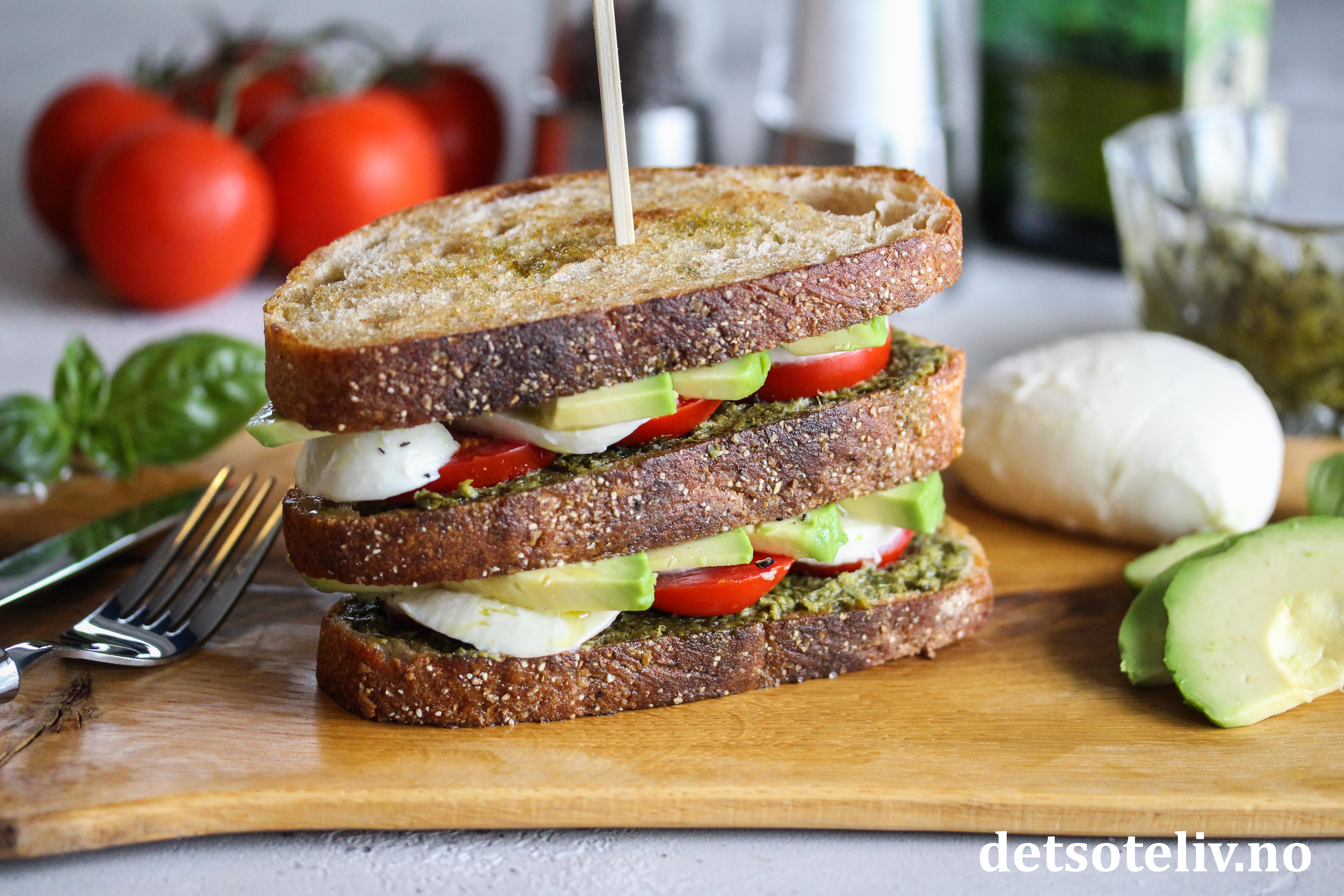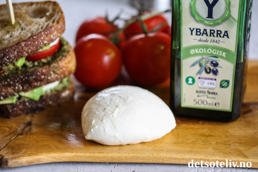Dagens digge Sandwich med pesto og mozzarella har italienske smaker, og glir fint inn i kategoriene for ost og brød som jeg allerede har opprettet. Jeg synes dette er utrolig godt, og det er ekstra kult å stable sandwichen i høyden! 😃