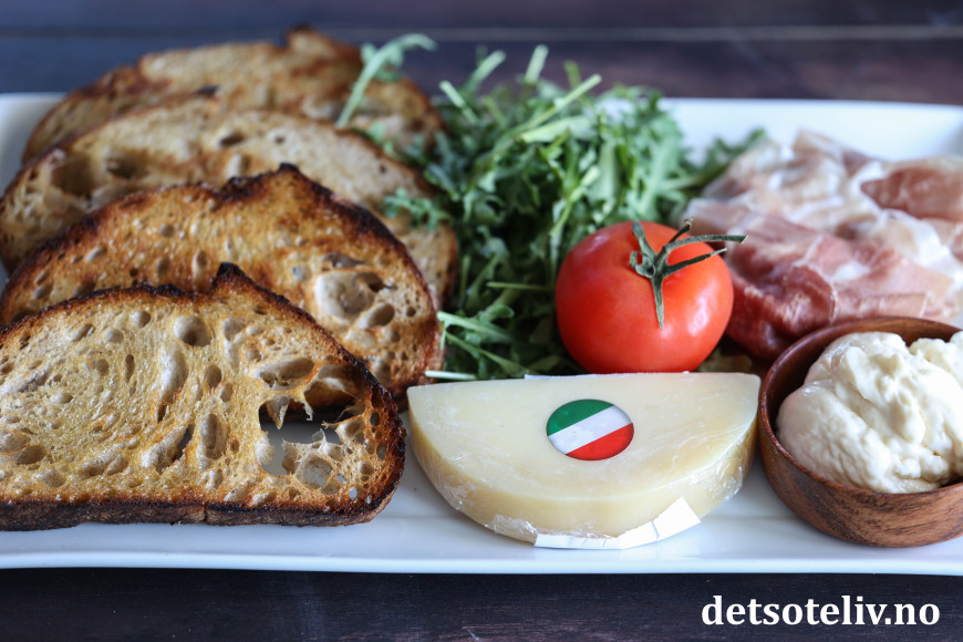 ♥ 100 g prosciutto crudo (gjerne parmaskinke, se tips)