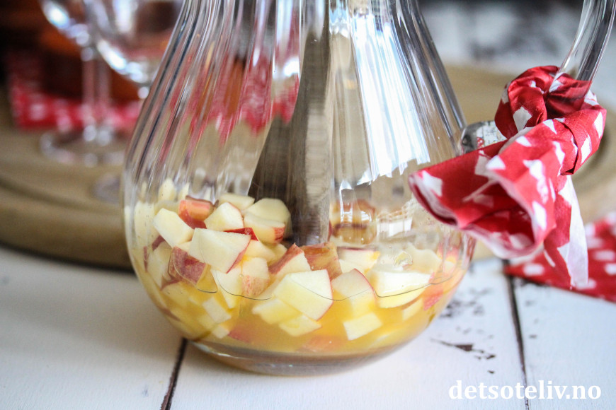♥ Dette er blandingsforholdet som jeg har kommet frem til at jeg liker aller best. Jeg liker at sangriaen er nokså søt og fruktig. Du kan selvfølgelig selv tilpasse blandingsforholdet til det du foretrekker.