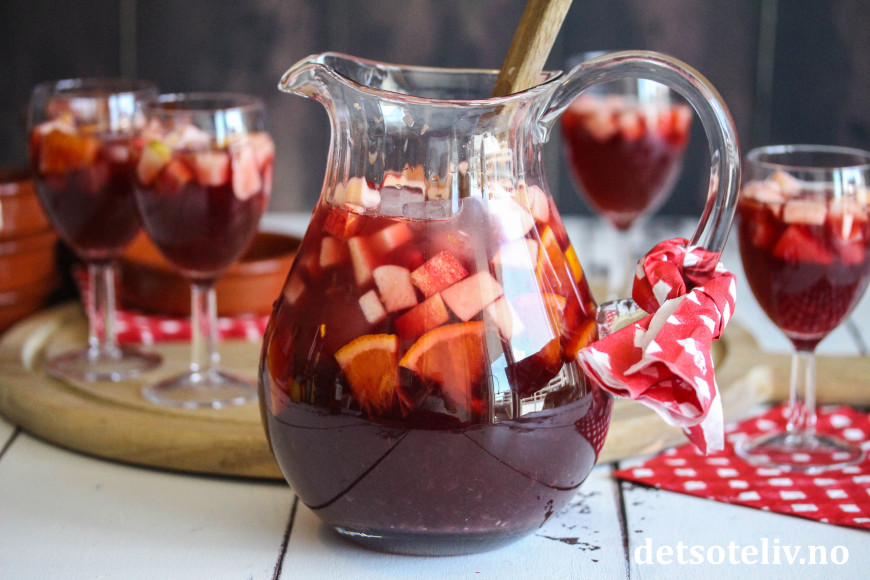 ♥ Se også Rosé Sangria som lages med rosévin, og oppskrift på Tinto de verano, som er en populær, men enklere spansk, rødvinsbasert sommerdrikk.