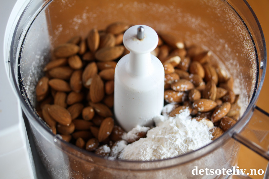 Mal mandlene og bland med bakepulver.