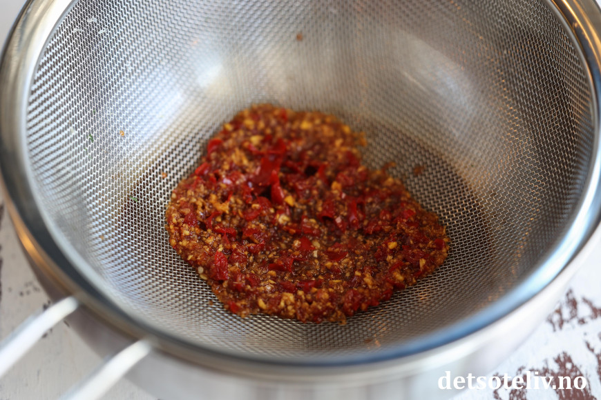 Sil blandingen slik at du får en klar saus og ha den i en skål.