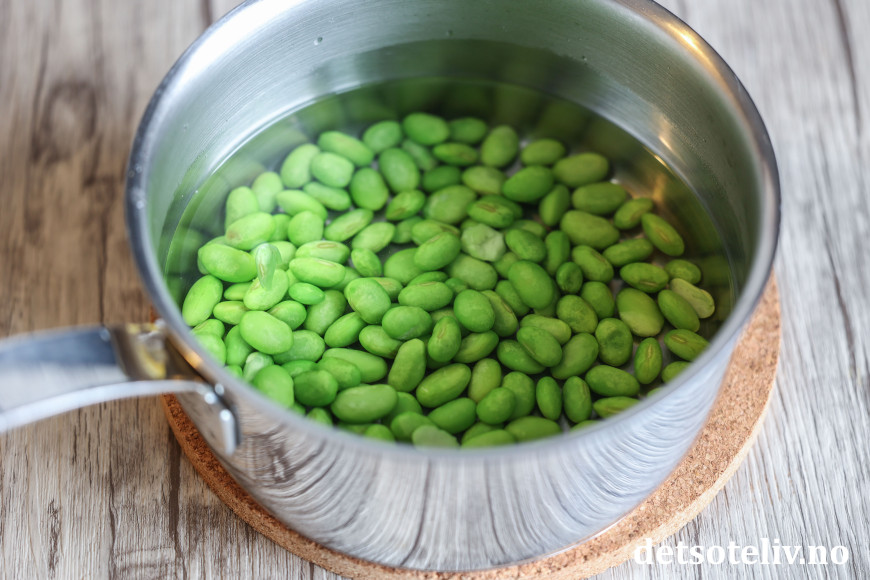 Legg edamamebønner i kokende varmt vann i noen minutter, som anvist på pakningen.
