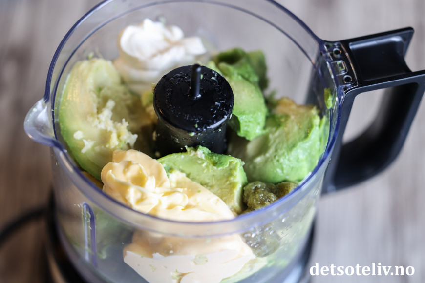 Rens avokado og ha i en liten food processor sammen med de øvrige ingrediensene.