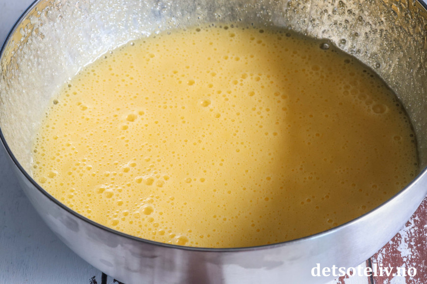 Pisk deretter inn eggene, ett om gangen.