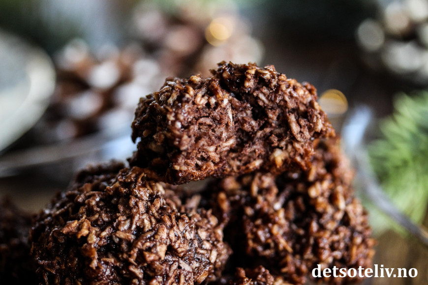 ♥ Disse kakene oppbevares i tett boks. Jeg foretrekker å fryse dem, for da beholder de den seige kjernen.