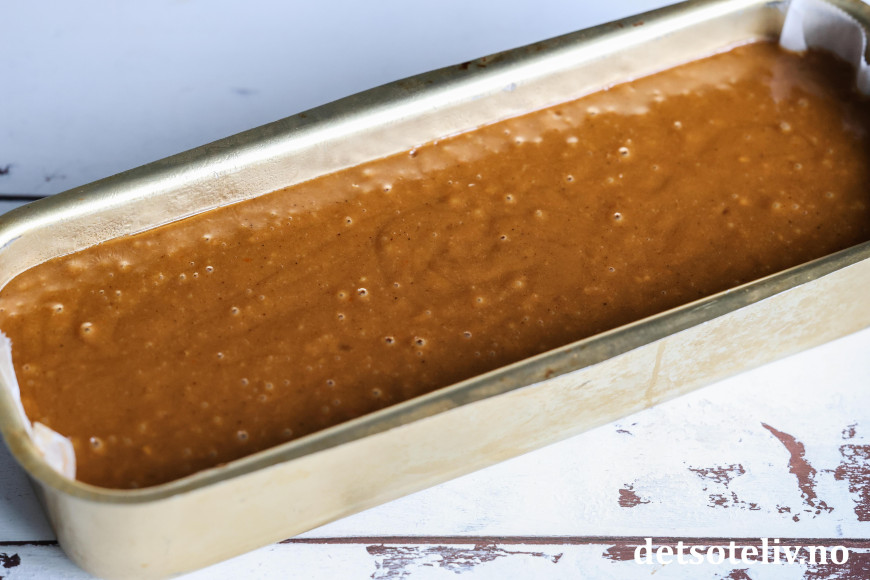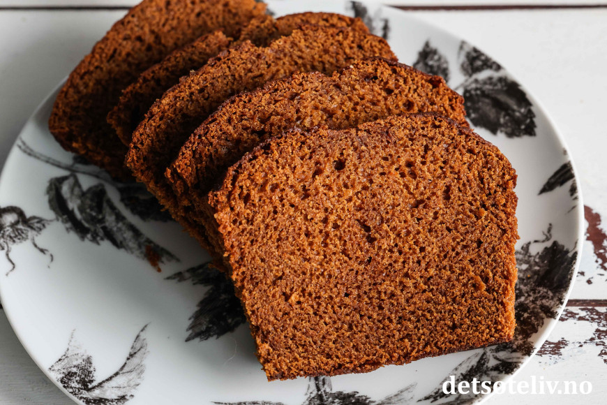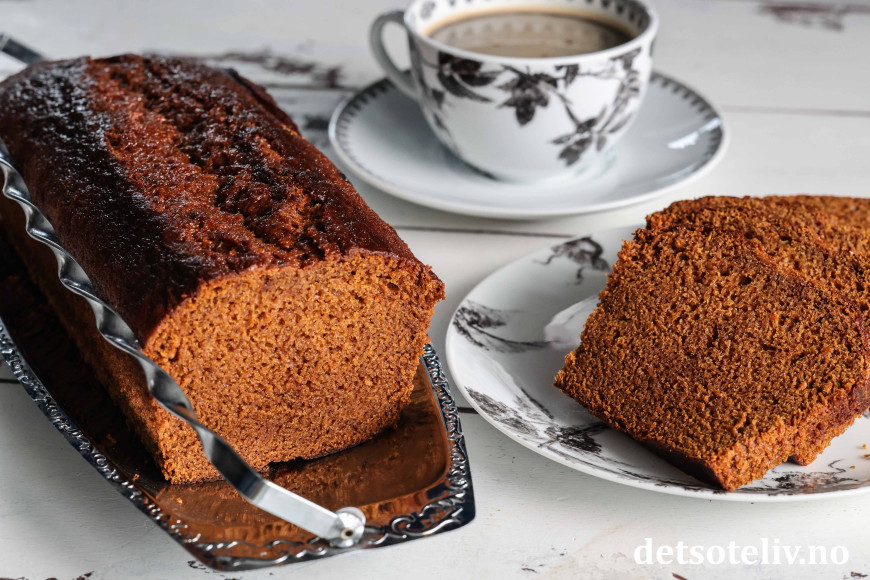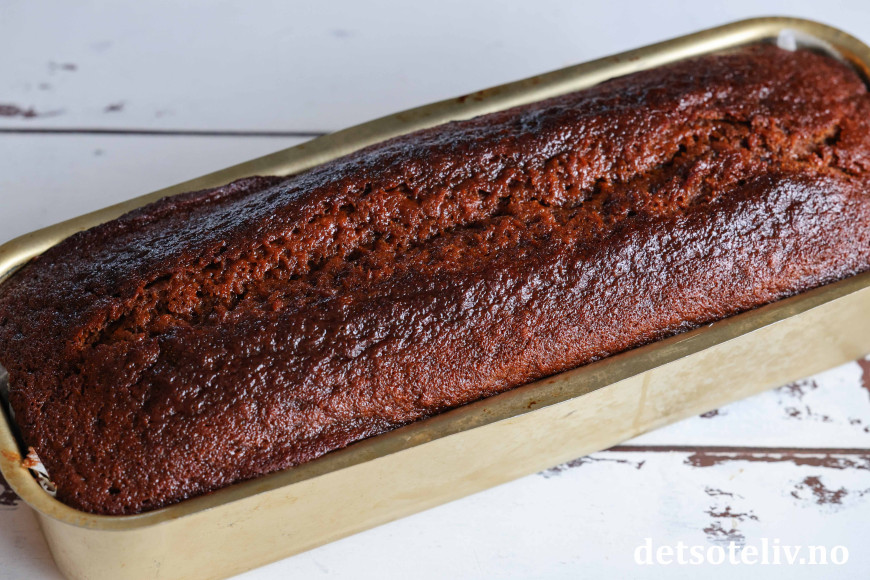 Den bakes uten egg, og oppskriften passer til en stor brødform eller liten langpanne.