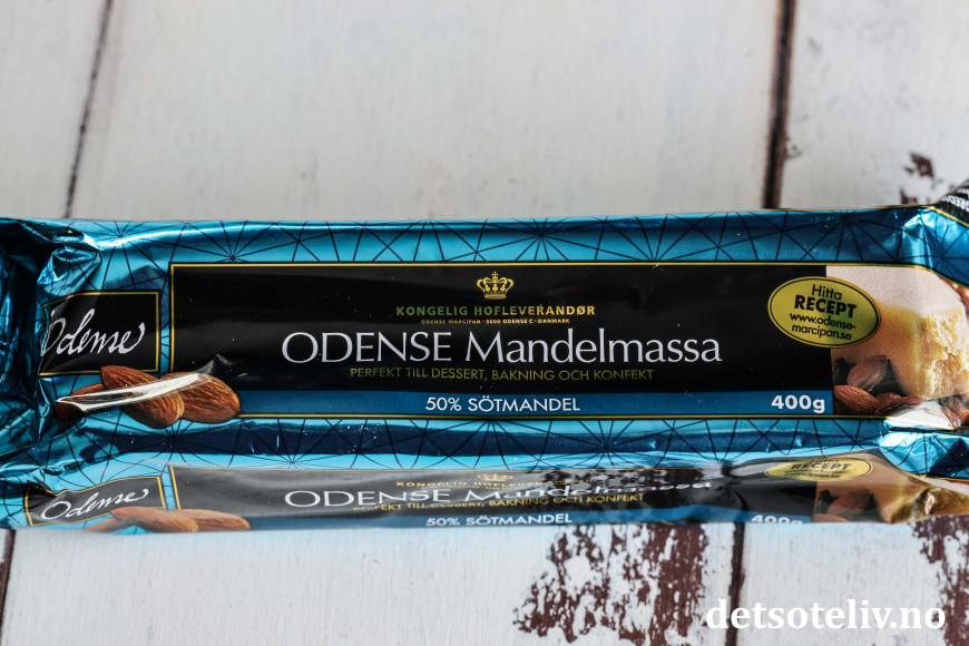 Dersom du får tak i svensk mandelmasse (selges ikke i Norge etter det jeg kjenner til), må du gjerne bruke den i stedet.