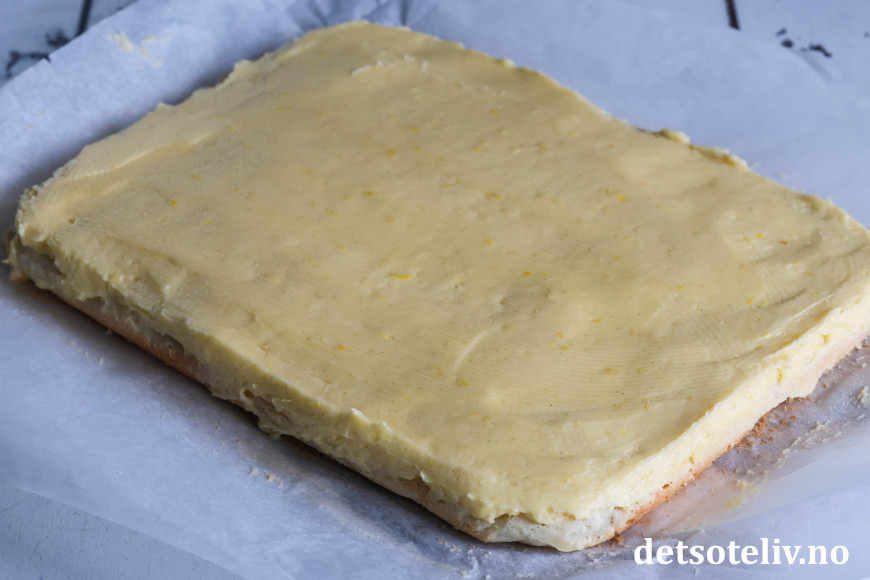 Bre sitronkremen over den avkjølte marsipanbunnen.