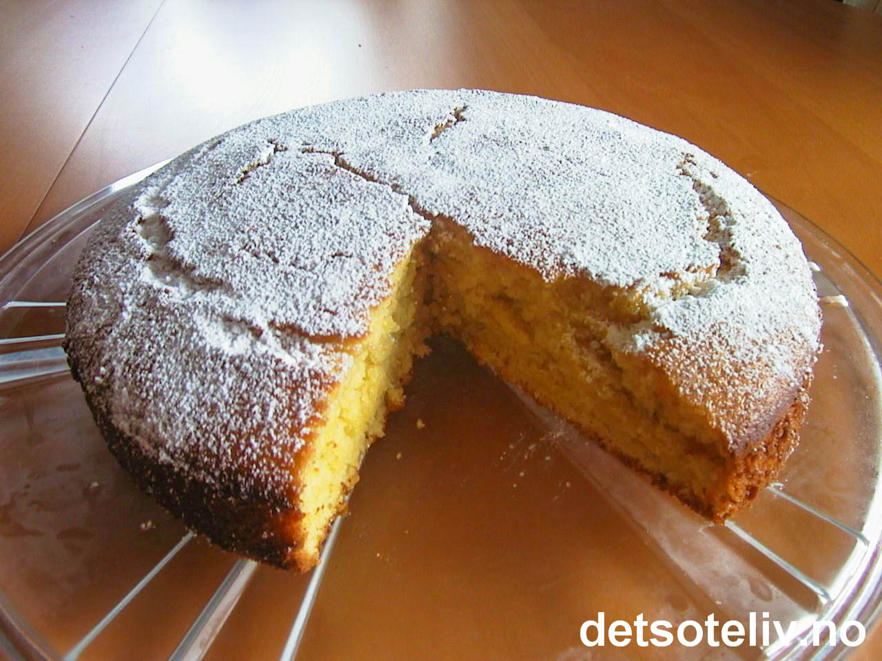 Kaken er fin å fryse. Sikt over melis rett før servering, da ser kaken nystekt ut.