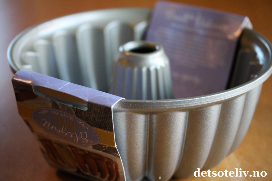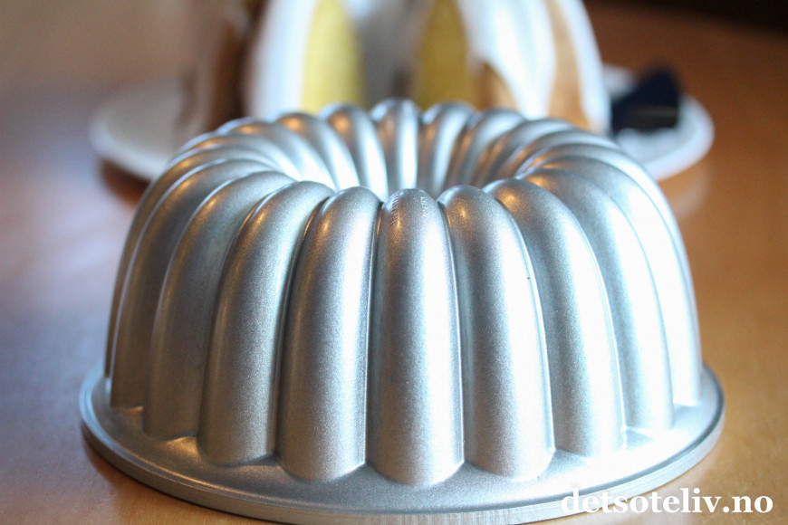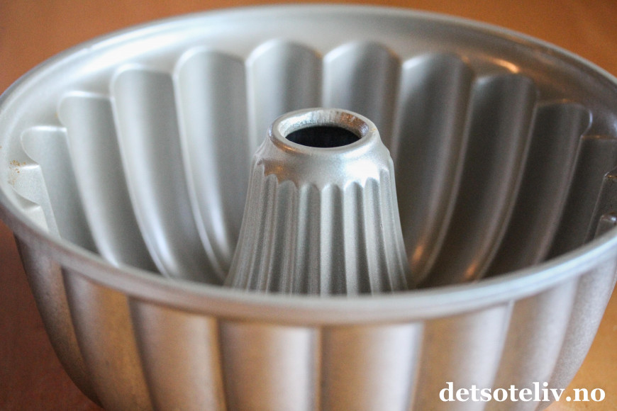 Jeg har brukt en klassisk formkakeform fra Nordic Ware (heter Elegant Party Bundt), som man kan få kjøpt i nettbutikken til bakerenogkokken.no.