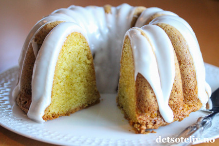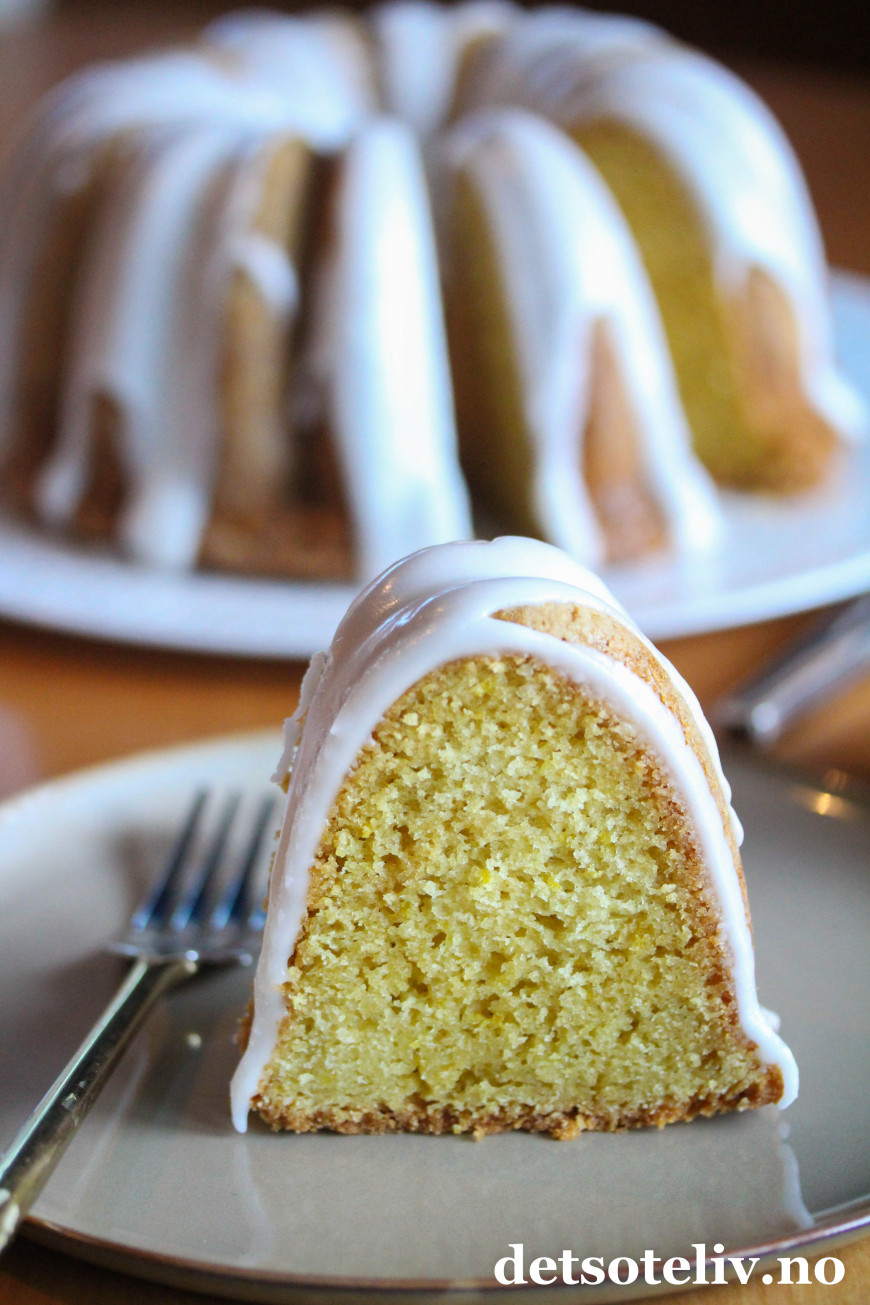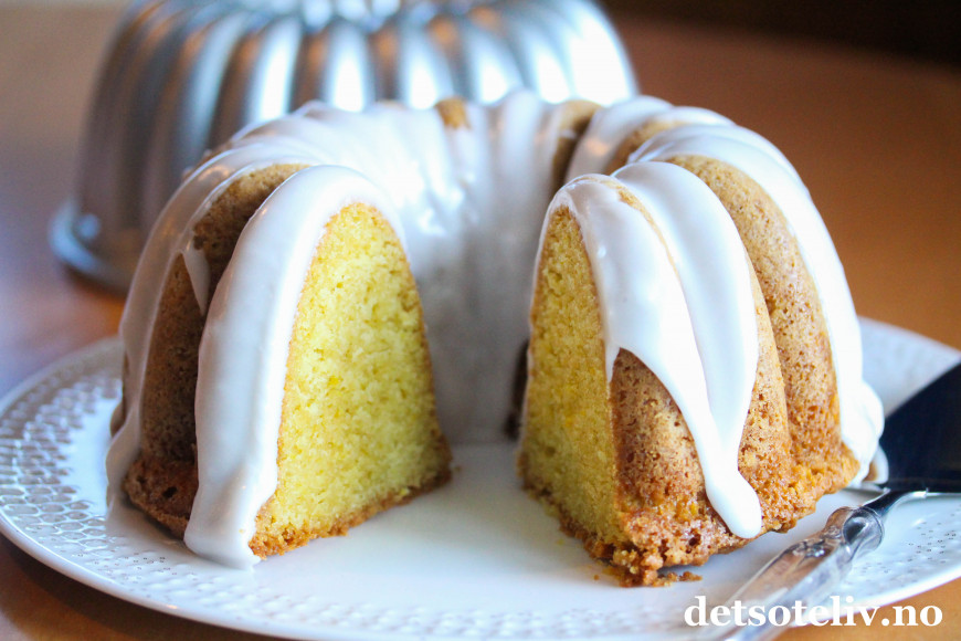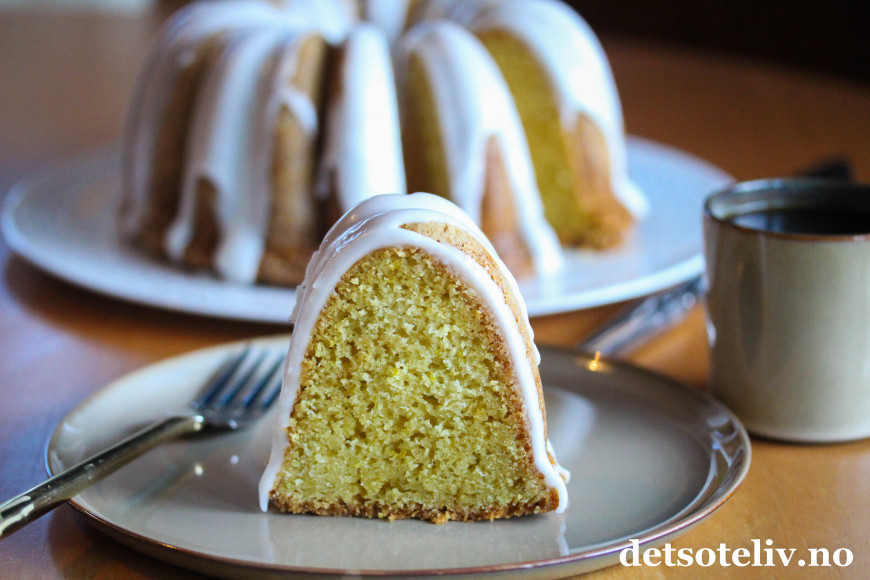 Her kommer en supersaftig sitronkake, som jeg anbefaler dere alle å teste ut. Crème fraîche i kakerøren gjør at kaken blir veldig myk i konsistensen, og slik holder den seg i flere dager sålenge kaken pakkes godt inn i plast.
