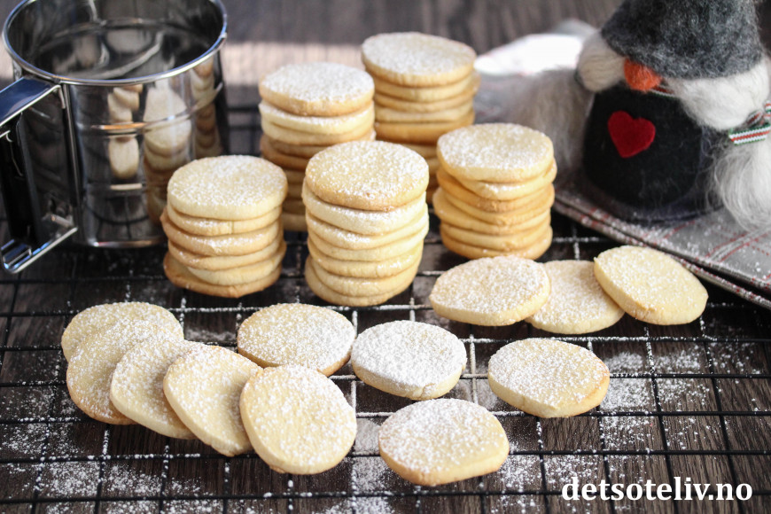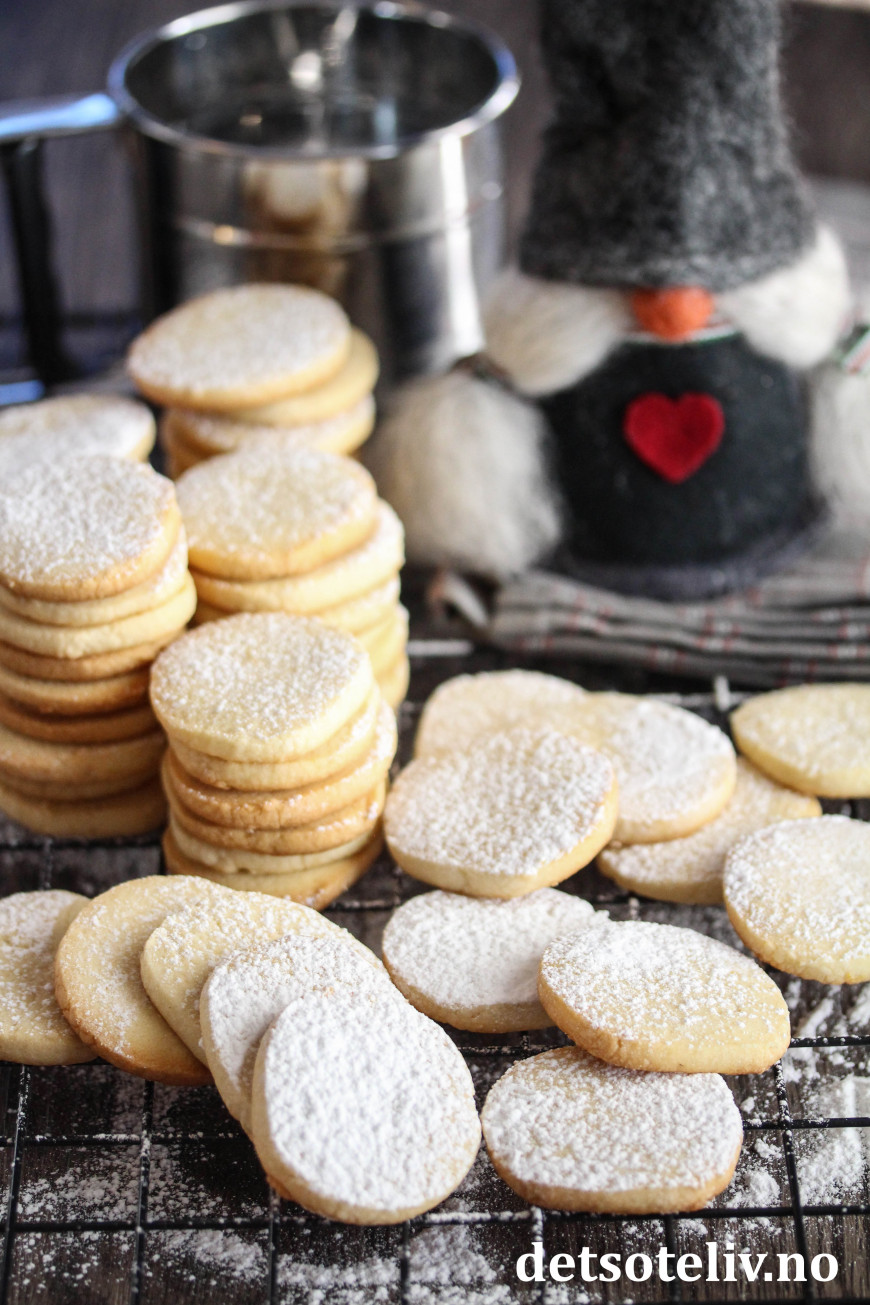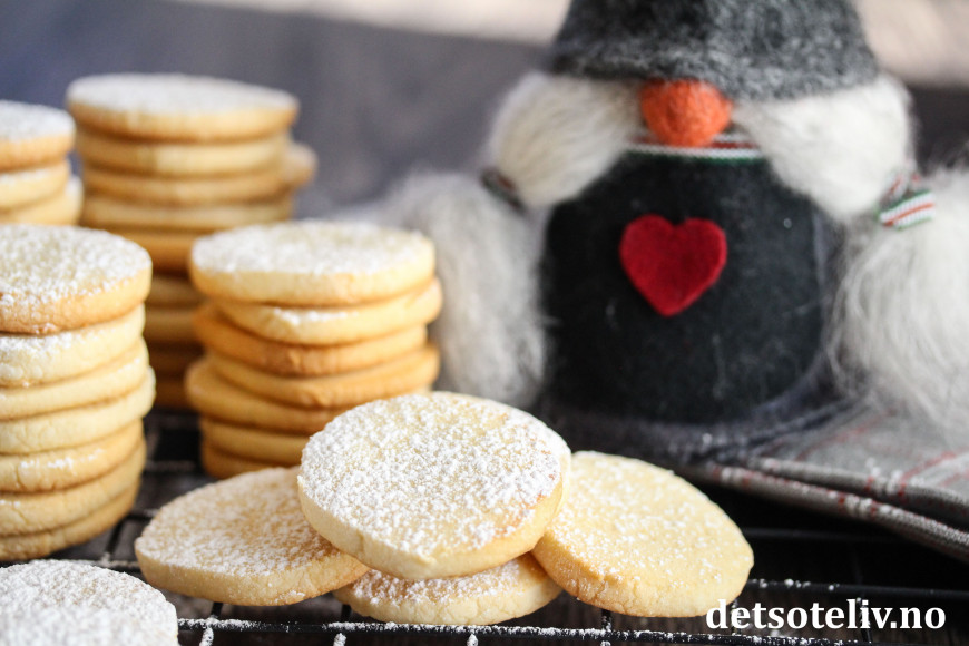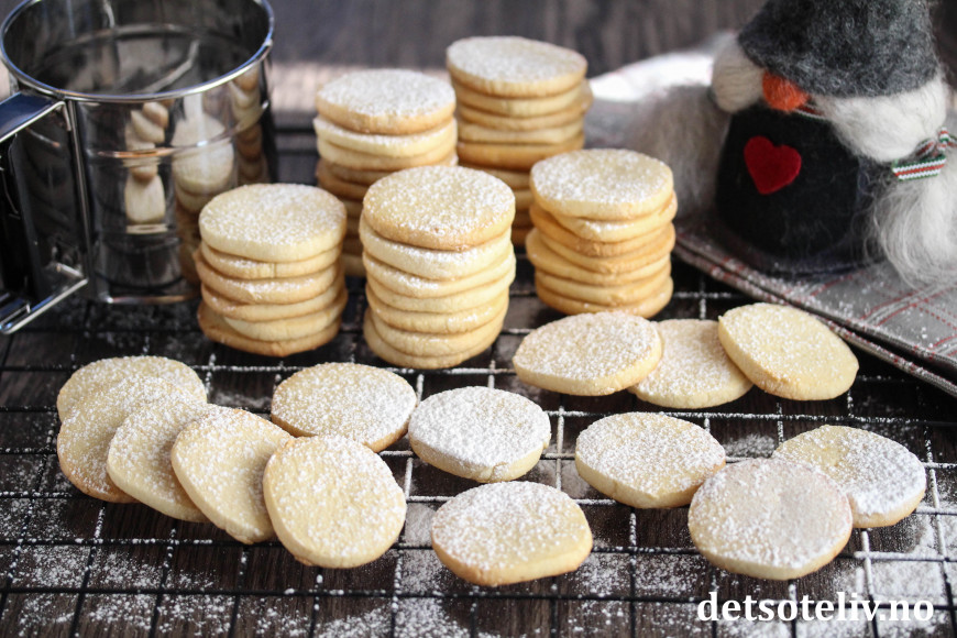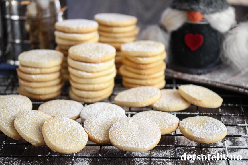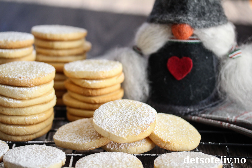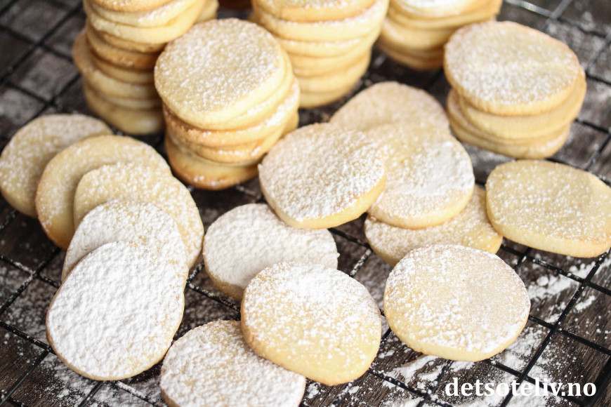 Stek kakene midt i ovnen ved 180 °C i ca. 10 minutter. Kakene skal være lyse i fargen også når de er ferdigstekte.
