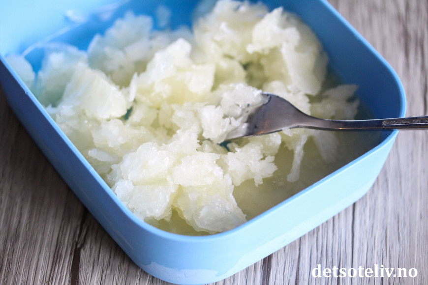 Ta den frosne sitronblandingen ut av fryseren og skrap den opp med en gaffel.