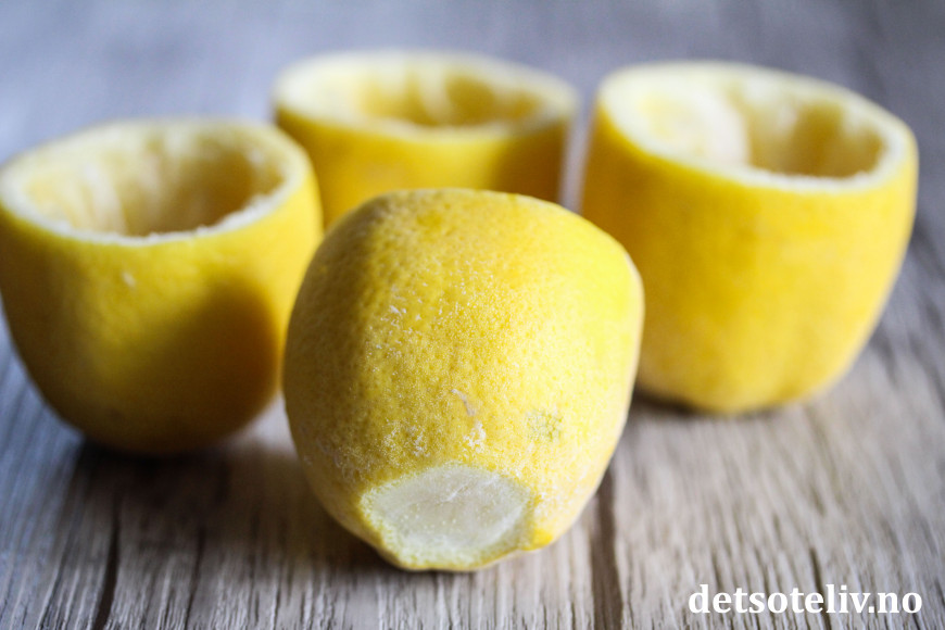 Legg også de uthulede sitronene i fryseren til dagen etter.