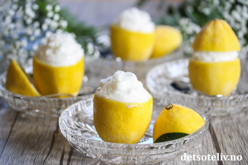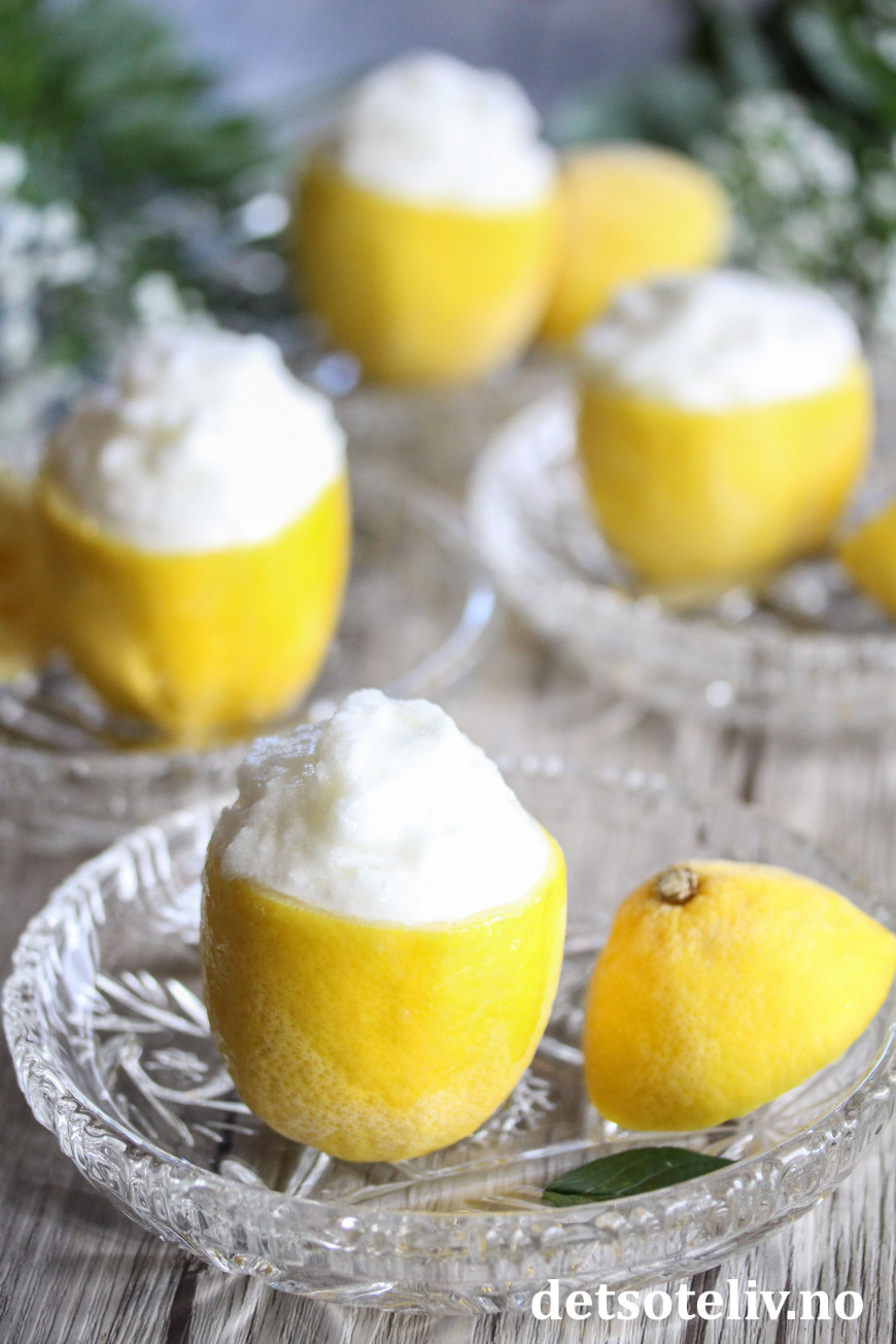 ♥ Det er selvsagt ikke noe i veien for å servere sitronsorbeten på vanlige dessertskåler.