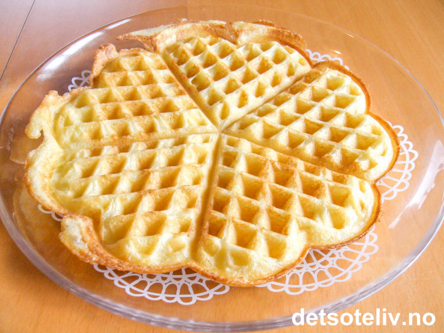 Stek vafler i vaffeljern på middels varme. Bruk litt ekstra smør eller formfett under stekingen.
